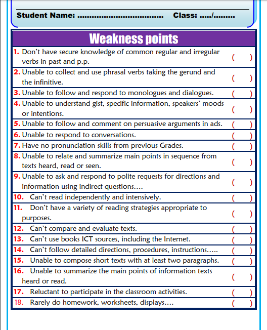 خطة علاجية لتقوية الضعاف في اللغة الانجليزية