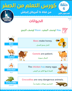 السلم عليكم نقدم لكم اليوم كتاب من سلسلة تعلم الانجليزية من الصفر المقدم من موقع كتب تعلم الانجليزية بصيغة بي دي اف للمؤلف إبراهيم عادل صاحب قناة Zamericanenglish ويختص درس اليوم بتعلم أسماء الحيوانات من خلال بعض الصور و بعض الجمل المترجمة من اللغة الانجليزية إلى العربية أسفلها حيث يشمل الدرس العديد من أسماء الحيوانات المعروفة و غير المعروفة و يتم إدراجها في جمل و يتم وضع ترجمة هذه الأخيرة وذلك للتمكن من حفظ المفردات و تعلم طريقة صياغتها في الجمل. يمكن التحميل بلأسفل بصيغة pdf