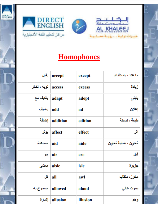 كتاب متشابهات اللغة الانجليزية هو كتاب الكتروني يحتوي ثلاث و عشرين صفحة من الكلمات المتشابهة في اللغة الانجليزية و كل صفحة تحتوي على جدول يضم بدوره ستة و ثلاثين كلمة متماثلة من ناحية النطق و الكتابة مترجمة من اللغة الانجليزية الى اللغة العربية و يغطي الكتاب جميع المصطلحات المتشابهة سواء كانت أفعال كلمات صفات مسميات أرقام حيوانات ..... و يعتبر من أفضل الكتب و أحسنها لحصوله على تقييمات عالية و لأنه قد ألف من قبل أستاذ مختص في تعلم اللغة الانجليزية يدعى مبارك أحمد عبد الهادي الطالب المتحصل على العديد من الشهادات والديبلومات المعترف بها عالميا والذي يملك الخبرة الكافية على مدار السنوات التي اشتغلها كأستاذ بالمعاهد البريطانية و معاهد السودان معهد السعودي الألماني للمصطلحات الطبية و الصحية و يعمل حاليا مدرسا بمركز الخليج للتدريب و التعليم قي المدينة المنورة منذ 2012. و يتوفر الكتاب للتحميل بصيغة بي دي اف على موقع كتب تعلم الانجليزية مجانا وبدون مقابل خصوصا لراغبي تعلم اللغة الانجليزية للمبتدئين إلى حد الاحتراف و التمكن رابط التحميل pdf بالأسفل.