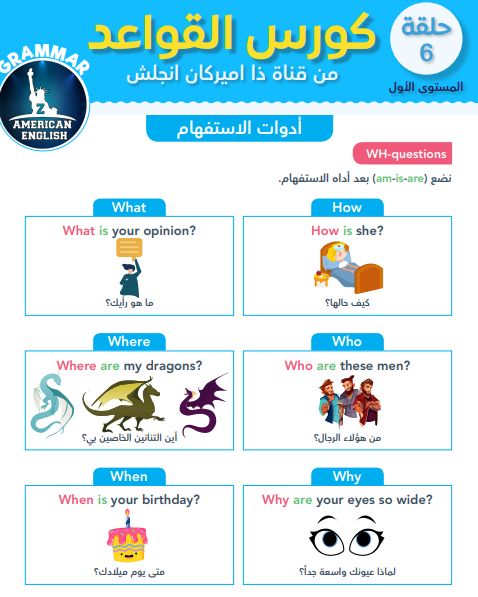 كتاب أدوات الاستفهام يعد من كتب تعلم الانجليزية الموجودة بموقع كتب تعلم الانجليزية والذي يمكنك تحميله اذا كنت مهتم بتعلم اللغة الانجليزية من خلال الموقع فهو كتاب سهل تحميلة بصيغة ال pdf ويعد واحدا من كتب كورس القواعد الموجودة في قناة إبراهيم عادل zamericanenglish لا تفوت تحميله إذا كنت تريد تعلم أساسيات اللغة الانجليزية.