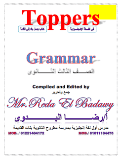 كتاب Grammar لقواعد اللغة الإنجليزية للصف الثالث الثانوي من موقع كتب تعلم الانجليزية مناسب جدا لتعلم اللغة الإنجليزية بطريقة مبسطة و تضمن الفهم البليغ ، الكتاب جمع و تحرير الأستاذ في اللغة رضا البدوي مدرس أو لغة إنجليزية و الكتاب يقدم قواعد اللغة الإنجليزية في 26 صفحة و يوفر الإستفاضة في الشرح المبسط المدعوم بالأمثلة التوضيحية بجانب الشروحات الخاصة بكل قاعدة علي حدي كما تتناول كل قاعدة الشرح علي فقرات لكل الجوانب في القاعدة ، لذا فالكتاب مرشح بصورة كبيرة للمتعلمين خصوصا طلاب الصف الثالث الثانوي لتعلم اللغة الإنجليزية من الصفر إلي الإحتراف كما أنه مفيد جدا للمبتدئين في تعلم اللغة و قواعد اللغة الإنجليزية .