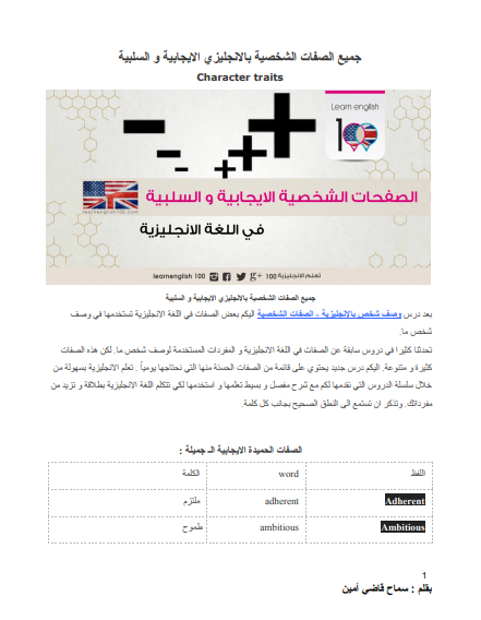 جميع الصفات الشخصية باللغة الانجليزية (الايجابية و السلبية) PDF