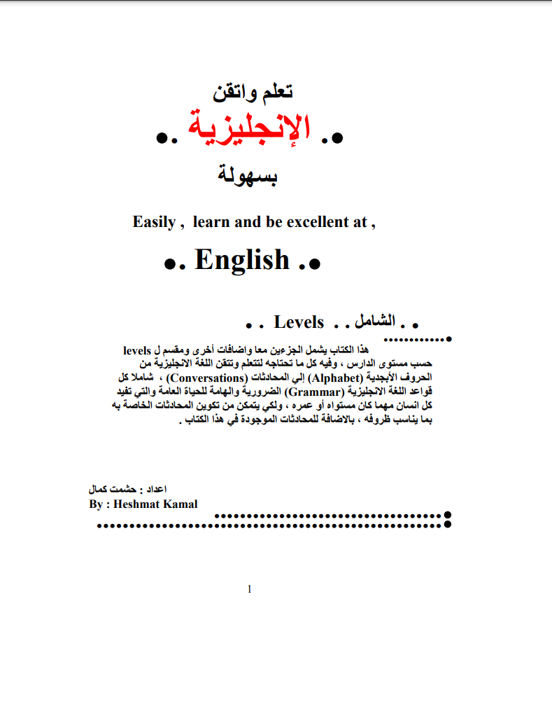 كتاب تعلم واتقن الإنجليزية بسهولة بالغة هو كتاب شامل وقد تم تقسيمه إلي جزئين يشملهما الكتاب كما تم تقسيم الكتاب إلي مستويات تدريجية يبدأ بالحروف الأبجدية باللغة الانجليزية الي المحادثات منتقلا الي قواعد اللغة الانجليزية الضرورية جدا لتعلم اللغة الانجليزية لذا فالكتاب يساعد المتعلم والدارس بشكل كبير جدا لتعلم واتقان اللغة الانجليزية من الصفر الي الاحتراف ليتمكن المتعلم من الحصول علي اللغة الانجليزية واجادتها، كتاب تعلم واتقن الإنجليزية عبارة عن 72 صفحة تحتوي علي أكبر مجموعه من الكلمات باللغة الانجليزية قم تم تقسيمها بتنسيق كبير إلي فئات مختلفة وكل منها به عدد كبير من الأمثلة مترجمة باللغة العربية للفهم الجيد ومتابعة الاستيعاب، كما أنه مقسم الي جداول مختلفة تبعا لكل مستوي تعليمي ما يسهل علي المتعلم القراءة والمراجعة حيث يتميز الكتاب بالتنسيق الجيد و التدرج في التعلم مهم جدا لتأكيد وثبات المعلومات في تعلم اللغة الانجليزية. لذا فكتاب تعلم واتقن الإنجليزية مرشح للمتعلمين الجدد والدارسين ويسهل التعلم على المبتدئين لتعلم اللغة الانجليزية لإتقانها من الصفر الي الاحتراف بشكل تدريجي جيد، والكتاب متوفر على موقعنا مجانا بصيغة pdf يمكنك تحميله بالضغط على زر التحميل بالأسفل.