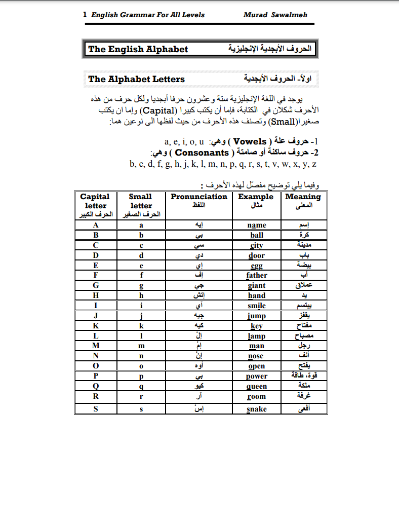 هو مجموعة من الملفات الرقمية يبلغ عددها واحد وعشرين صفحة نخص المتعلمين والأناس الجدد في اللغة الإنجليزية وتم تأليف هذا الكتاب بهدف تعليم المبتدئين طرق النطق السليم من الصفر حيث يشرح الكاتب طريقة نطق الحروف البسيطة ومن ثم الحروف المزدوجة ومن بعدها المركبة التي تحتوي على العديد من الحالات الشاذة. يقدم المحتوى في شكل جداول مصحوبة بأمثلة ومن أسفلها الملاحظات الخاصة بكل قاعدة نطق وما يجب عليك تجنبه إثر وجود حرف قد سبقه حرف آخر والعديد من القواعد الأخرى. عموما الكتاب جيد جدا ويخص أولئك المبتدئين وبالنسبة للتصميم فهو بسيط وغير معقد بل على العكس فه يتسم فالنظام والترتيب المتوازن. يتوفر أبسط كتاب في الصوتيات على موقعنا كتب تعلم الإنجليزية بي دي اف مع رابط تحميل مباشر لجميع المستويات من الصفر إلى الاحتراف وبصفة مجانية ودون الحاجة إلى معلم فالكتب التي نقدمه تتم صناعتها من قبل أستاذة في تعليم اللغة الانجليزية. لتحميل الكتاب من موقع تعلم اللغة الإنجليزية بي دي اف pdf ستقوم بالضغط على زر التحميل الأحمر أسفل المقال ومن ثم الانتظار لمدة 5 ثواني ريثما يتم انشاء رابط التحميل ومن ثم الضغط مجدداً على زر التحميل الأحمر وسيتم توجيهك إلى رابط التحميل المباشر.