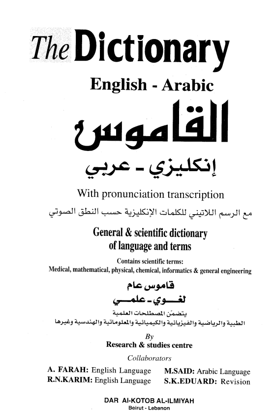 قاموس اللغة الإنجليزية العام انجليزي - عربي (لغوي - علمي)